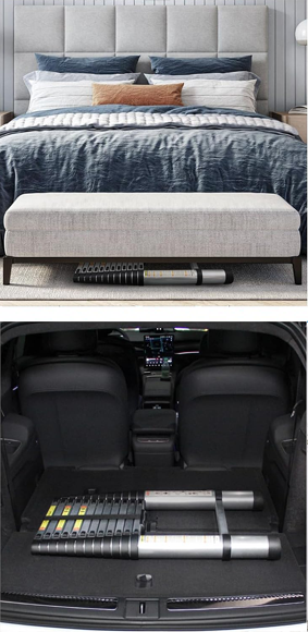 7 درجة، ارتفاع مطوي يوصل بس 68 سم، ينحط بصندوق السيارة، ورا الباب أو حتى بخزانة صغيرة.