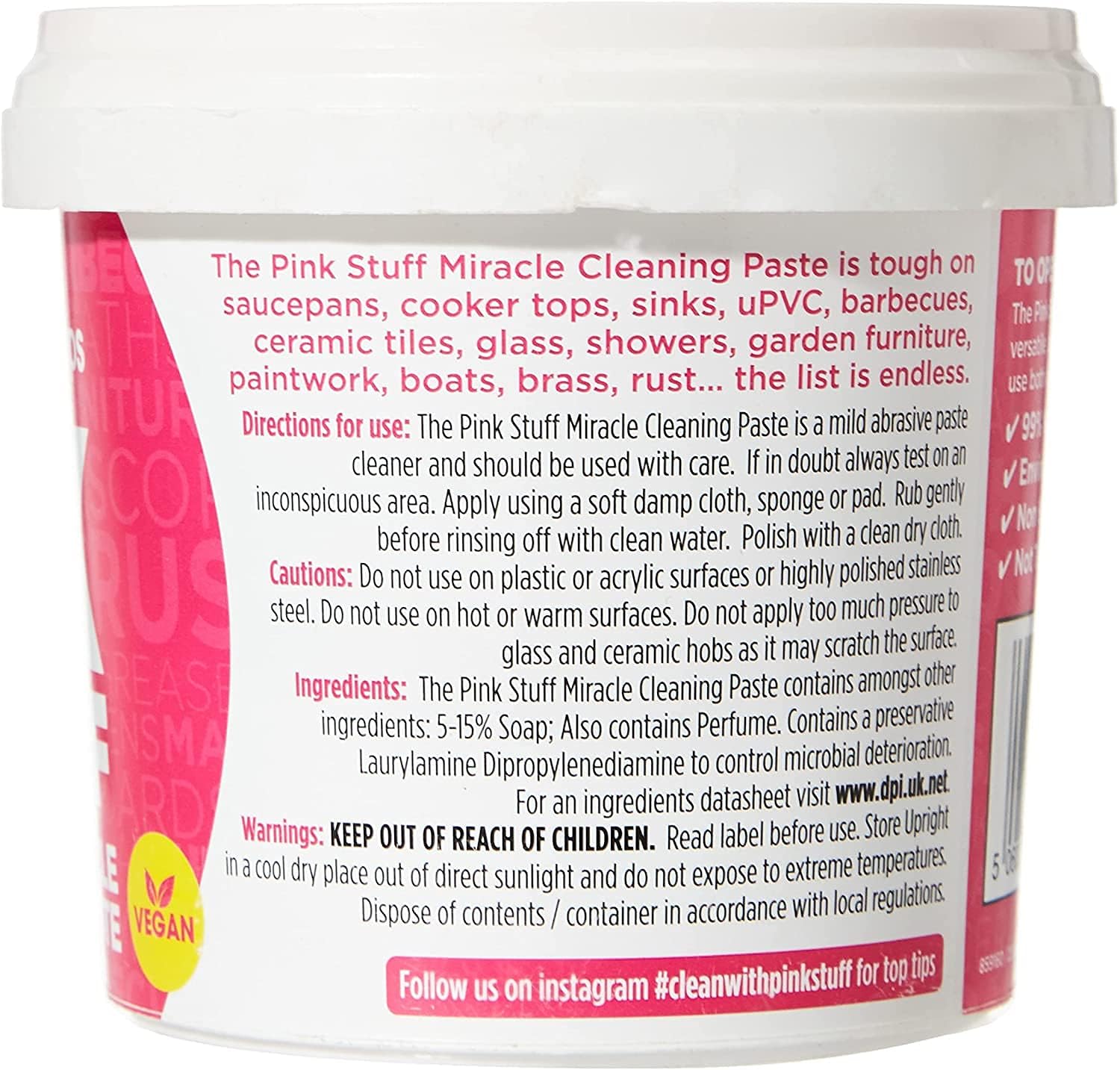 هل تبحث عن منتج يجمع بين الفعالية وسهولة الاستخدام؟ معجون التنظيف الجبار The Pink Stuff هو الحل الأمثل لتنظيف كافة الأسطح بكل سهولة. بتركيبته الفريدة، يمكنك إزالة البقع الصعبة، والشحوم، وحتى الآثار القديمة. جربه الآن وتمتع بأفضل نتائج التنظيف!